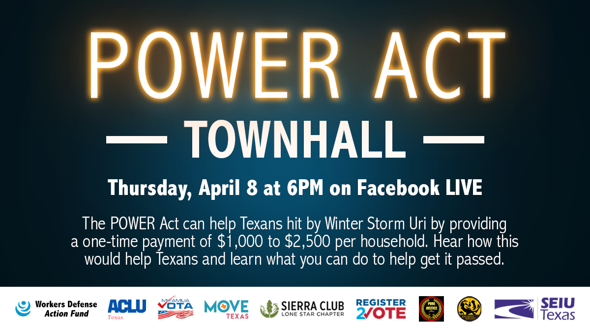 In 2021, Texas experienced an extreme winter storm, leaving millions without electricity for several days. An outdated electric grid that Texas Republicans have failed to address was responsible. In response to a mass loss of income for Texans who were also still suffering financially from COVID-19, Workers Defense worked with lawmakers to advocate for the POWER Act. This bill would have provided up to $2,500 for families affected. This campaign highlighted many Texans impacted by the blackout and garnered attention from a broader audience with that same hardship. We drove calls and letters to lawmakers, hosted actions, and provided testimony to committees.